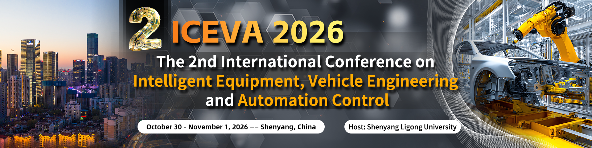 The 2026 2nd International Conference on Intelligent Equipment, Vehicle Engineering and Automation Control (ICEVA 2026) will be held from December 11-13, 2026 in Shenyang, China, hosted by Shenyang Ligong University. This conference focuses on cutting-edge technologies and development trends in the fields of intelligent equipment, vehicle engineering and automation control, aiming to provide a high-level academic exchange platform for global scholars, engineers and industry experts. The event will cover hot topics including intelligent manufacturing, intelligent connected vehicles, robotics, automation systems, and AI applications. Through keynote speeches, thematic discussions and paper presentations, the conference will facilitate deep integration of industry, academia and research, while promoting technological innovation and industrial upgrading. We cordially invite experts and scholars from around the world to actively submit papers and participate in this conference to jointly explore new opportunities in the development of future intelligent technologies!